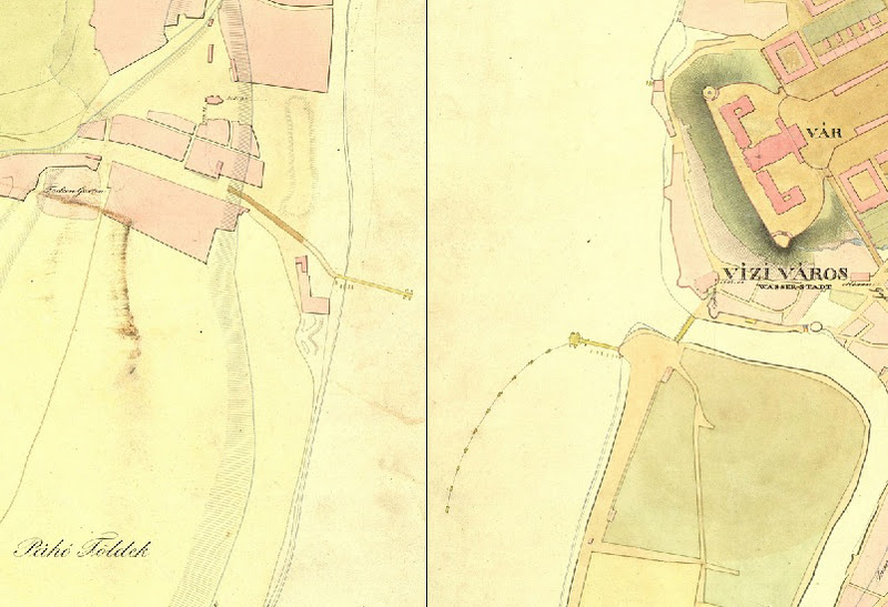 | 3. kép A Kutyaszorító erőd és az 1595. évi sáncok a Duna Mappáció térképén |